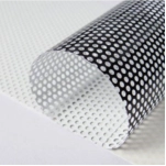 Los vinilos microperforados están compuestos de pequeños orificios regulares dejando pasar la luz, su parte trasera es negra, lo que permite la visibilidad desde el interior del local, sin embargo desde el exterior se visualiza la impresión digital, especial para vitrinas, ventanas y separadores de interior de vidrio.